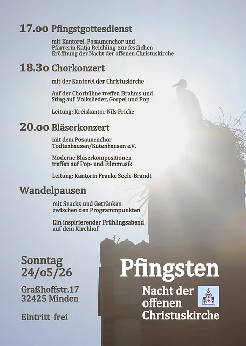 Zurzeit erarbeiten wir ein Programm für unsere Nacht der offenen Kirche am Pfingstsonntag ab 17 Uhr. Dazu gibt es Stücke u.a. von Mendelssohn, Brahms, Narverud und Sting.