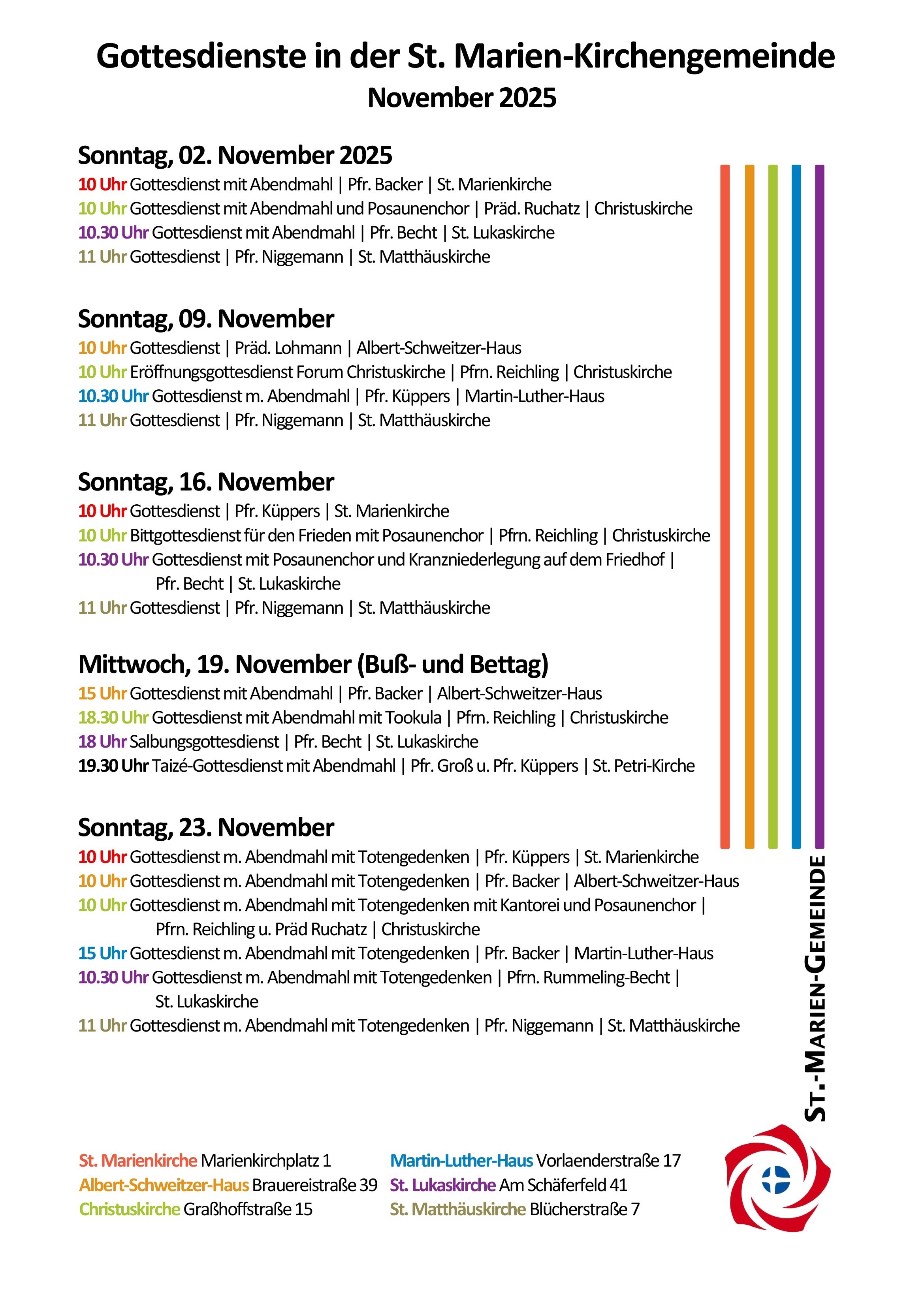 Unsere Gottesdienste im November: